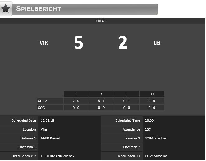 Für die Leisacher Adler stand an diesem Freitagabend in der (beneidenswert) tief winterlichen Virger Eisarena ein, nach zwei Niederlagen in Folge, „Wieder-in-die-Spur-kommen“ an. Ein Vorhaben, das mit nicht unbedingt optimalen Voraussetzungen garniert war. In der Spieleraufstellung konnte man, im Unterschied zum Huben-Match, wieder zusätzliche Cracks aufscheinen lassen. Diese kamen jedoch frisch aus der Rekonvaleszenz und konnten zudem, wie auch die restliche Mannschaft, seit knapp zwei Wochen, u.a. witterungsbedingt, keine entsprechende vertiefende Trainingseinheit aufweisen.