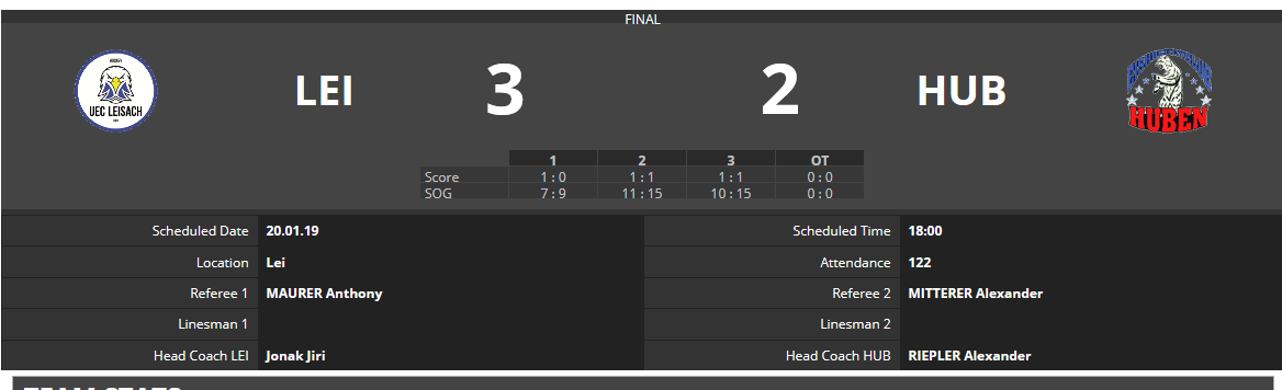 20190120_erste-vs-huben_ergebnisTore für Leisach: Roland Brunner 2x, Raphael Senfter
