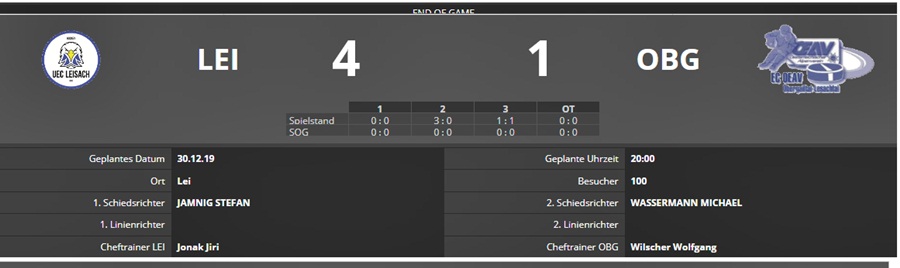 Punktegewinn in der Leisacher Natureisarena 30. Dezember 2019 Neu formierte Truppe der Leisacher Adler landete ersten Punktegewinn in dieser Saison. Ersatzgeschwächte Heimmannschaft fand gegen den EC OeAV Obergailtail sehr schwer ins Spiel. Details zum Match Zu den Fotos
