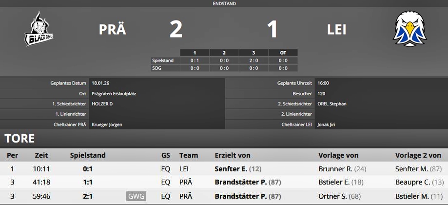 (Zu) schnell nach Wiederbeginn des dritten Spieldrittels (42. Spielmin) fiel der Treffer zum Spielgleichstand. Nunmehr noch druckvoller agierende Gastgeber fanden letztendlich vorerst u.a. und wie schon zuvor, in Adler-Goalie Jakub ihren Meister.
